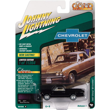 Feel the power and style of the 1967 Chevrolet El Camino - Royal Plum 1:64 Scale Diecast Model Truck by Johnny Lightning. This model truck captures the iconic design and color of the classic vehicle, making it a must-have for any collector. Get yours today and add a touch of nostalgia to your collection!