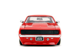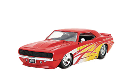 Rev up your car collection with the Big Time Muscle 1:24 1969 Chevrolet Camaro Die-Cast Car! This authentic model features real rubber tires, opening doors, hood, and trunk, plus a detailed interior. Perfect for kids and adults, it's a must-have for any American muscle car enthusiast. Available in red. Don't miss out - collect them all!
