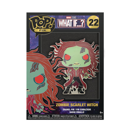 Introducing Funko Pop! Pin: Marvel - What If…?, featuring Zombie Scarlet Witch with a chase variant. Each collectible metal pin showcases Funko's unique techniques and signature Pop! style. With a removable display stand, proudly display your pin and add this rare find to your collection!