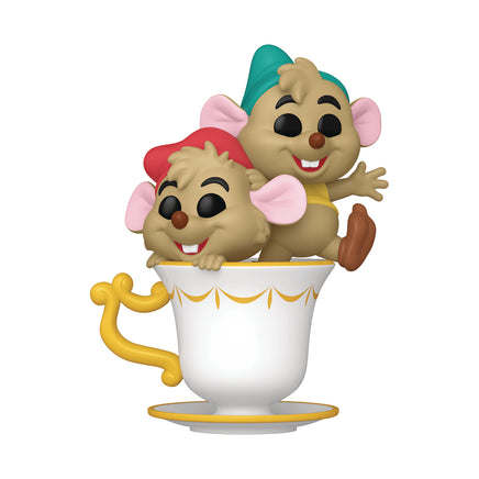 Experience the magic of Disney's Cinderella with these adorable Funko Pop! Jaq and Gus figures. Standing at 4.35-inches tall, they are eager to make Cinderella's dream of attending the royal ball a reality. Celebrate the 75th anniversary with these charming mouse companions peeking out of a teacup.