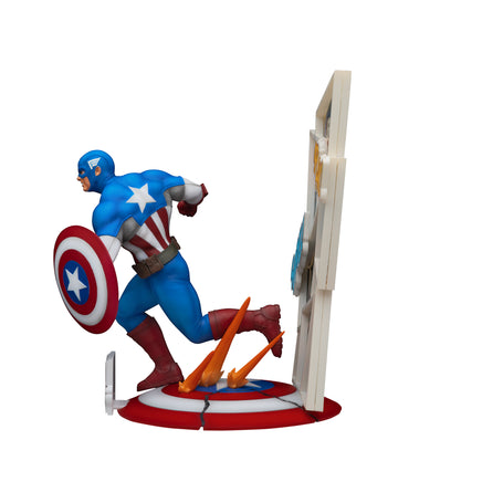 Celebrate 60 years of Marvel with this exclusive Captain America figurine from Beast Kingdom. Rendered in a comic book-accurate style, complete with panel backgrounds and typography, this collectible showcases the iconic hero's star-adorned shield. A must-have for passionate Marvel fans!
