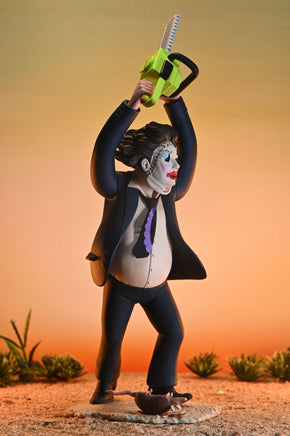 Introducing NECA's new Toony Terrors line, featuring stylized horror icons with an adorable twist! Celebrate the 50th anniversary of the Texas Chainsaw Massacre with this 6-inch Leatherface action figure, complete with his iconic "Pretty Woman" look and armadillo display base. Limited edition packaging includes original artwork to commemorate the film's milestone.