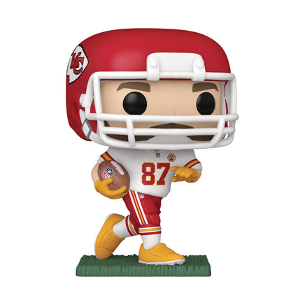 Bring home the energetic and passionate Funko Pop! Tasteful Society 98 collectible toy figure featuring Travis Kelce, the dynamic tight end of the Kansas City Chiefs. Proudly display him in his white away uniform and add a touch of NFL excitement to your collection. Standing at 4.15 inches tall, this vinyl figure is a must-have for any football fan.