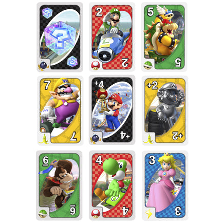 Experience the thrill of Mario Kart with this special edition UNO card game from Mattel! With iconic graphics and unique ITEM cards, you'll race to the finish line while using Mushrooms, Banana Peels, Green Shells, Lightning, and Bombs. Perfect for game nights and family fun, for 2-10 players.