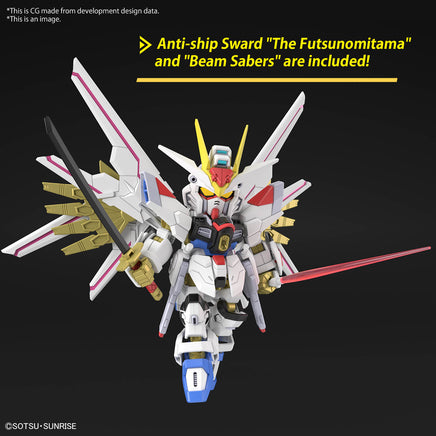 Unleash the power of the Mighty Strike Freedom Gundam from Mobile Suit Gundam SEED Freedom with this SD Gundam Cross Silhouette model! With a unique two-frame design and gold molding color, this model perfectly captures the iconic aircraft's characteristics. Choose between decal options for customizable details, and recreate dynamic flight conditions with the movable wing armor. Plus, equip it with the included anti-ship sword and beam saber for epic battle scenes.