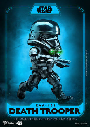 Join the elite ranks with the Star Wars: Death Trooper EAA-161 Action Figure from Beast Kingdom! This 6" figure features intricate details from the movie Rogue One, including a detachable tactical vest and exclusive blaster pistol and rifle. The green light effect on the helmet adds an extra touch of authenticity to this powerful and mysterious Imperial special force. Protect the Death Star in style with this highly playable and detailed action figure.